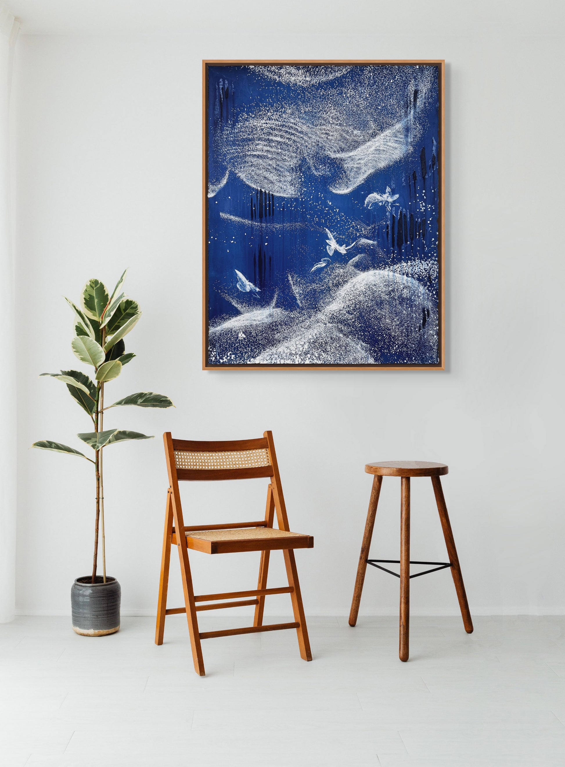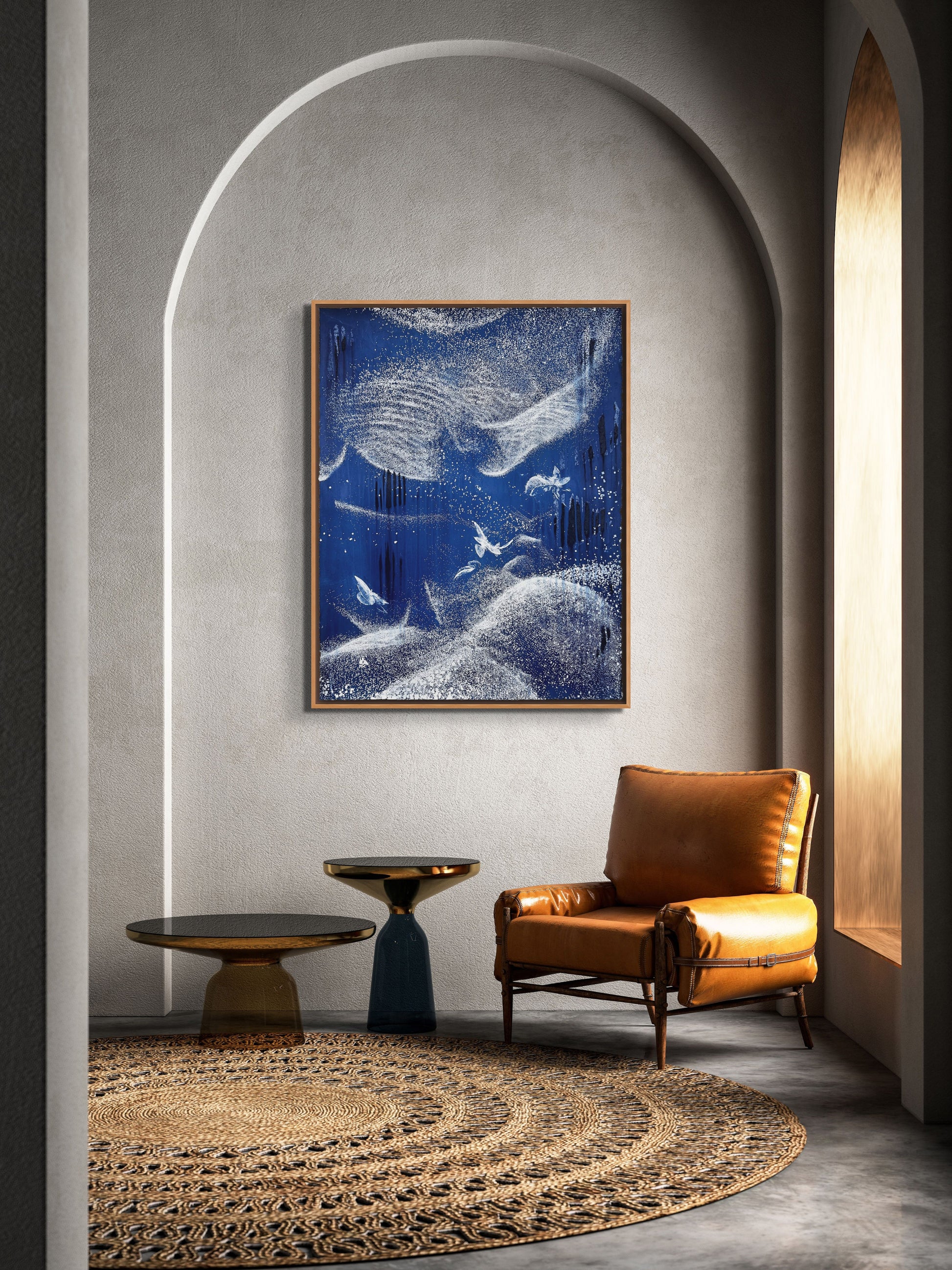 Frame is for illustrative purposes only, artwork is packaged and shipped carefully rolled in a tube. To commission a custom artist frame contact studio@joteva.com