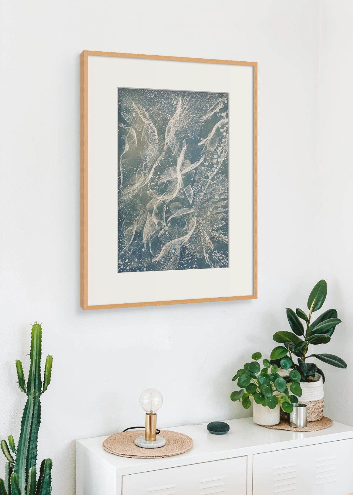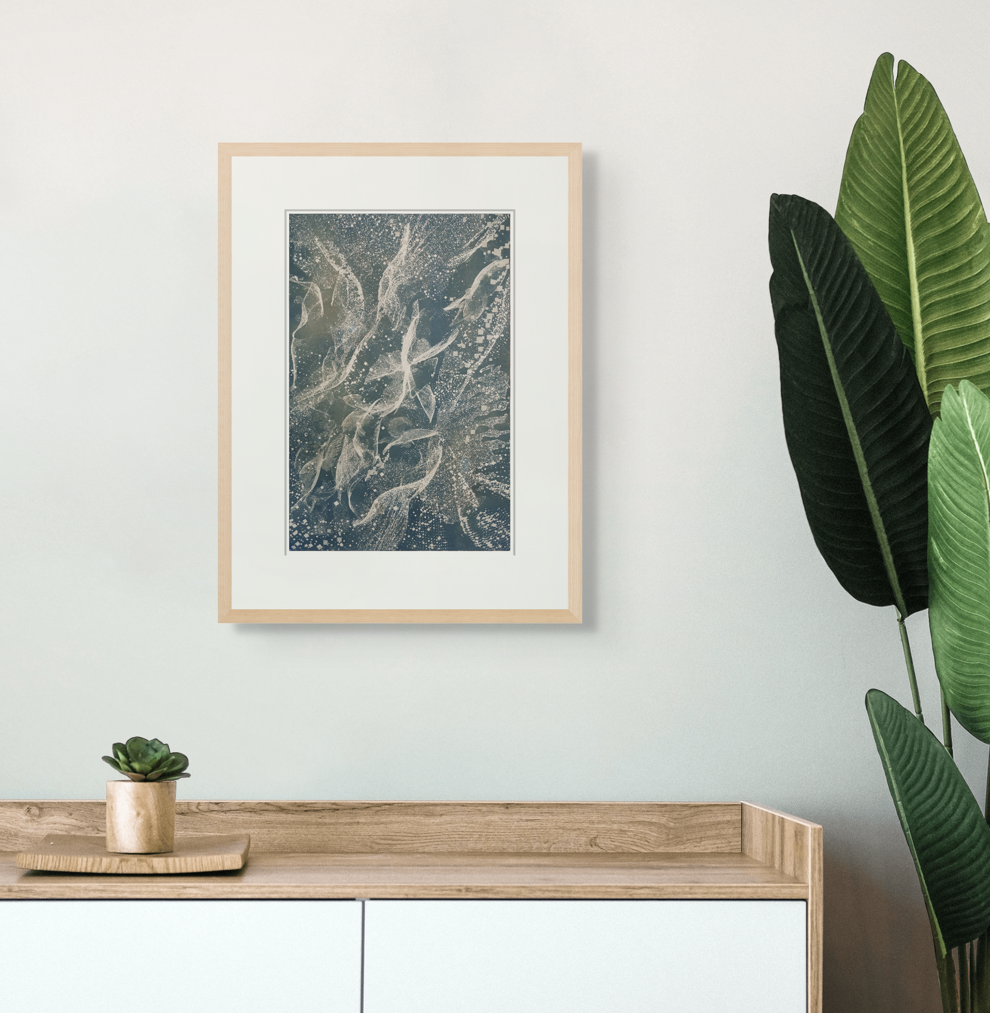 Frame is for illustrative purposes only, artwork is packaged and shipped carefully rolled in a tube. To commission a custom artist frame contact studio@joteva.com